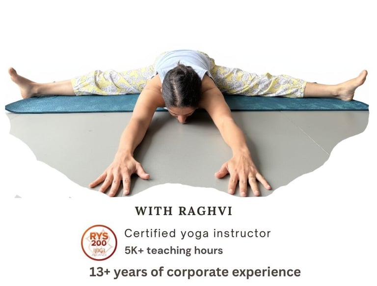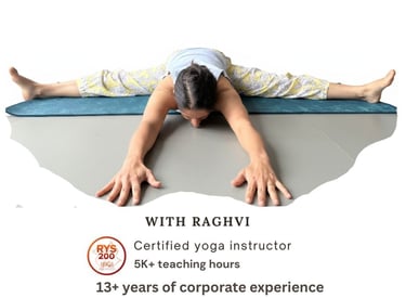 "Being new to yoga, I was initially intimidated, but Raghvi's clear instructions and patient teaching style made me feel comfortable from day one. She explains not just the poses but also the benefits . The weekly meditation is the perfect way to destress after a long workweek."
